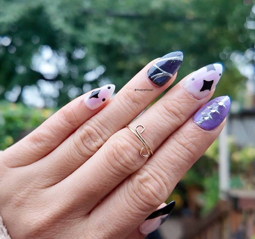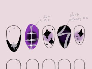 You’ve got a Kpop Demon Hunters–inspired nail set that’s moody, magical, and totally stage-ready.
